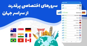 فیلتر شکن ایگل امکان اتصال به سرورهای متعددی در کشورهای مختلف را فراهم میکند. این سرورها به شما امکان میدهند تا به محتوای محدود شده در مناطق مختلف دسترسی داشته باشید.