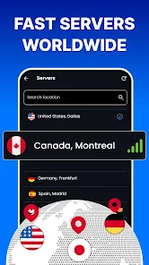 - سرورهای جهانی: این ویپیان قوی پرسرعت اندروید، سرورهایی در سراسر جهان دارد که امکان تغییر آیپی به کشورهای مختلف را فراهم میکنند.
