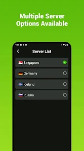 3. برخی نسخه‌ها امکان انتخاب سرور دستی و انتخاب کشور را می‌دهند؛ برای سرعت بهتر، نزدیک‌ترین کشور از نظر جغرافیایی یا سرورهایی که برچسب‌هایی مثل fast / turbo / gaming / streaming دارند را انتخاب کنید.