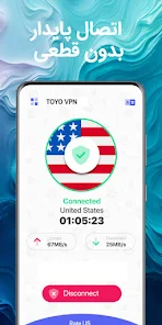- اگر نسخه اندروید گوشی شما با نسخه فعلی TOYO VPN سازگار باشد (مثلاً اندروید ۵ یا ۶ به بالا)، بهعنوان یک فیلترشکن قوی پرسرعت هنوز قابل استفاده است.