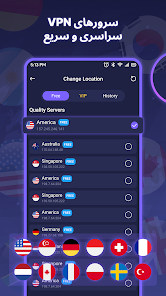 کارکرد کلیدی برنامه این است که با اتصال شما به سرورهای خارجی برای فیلتر شکن در کشورهایی مثل آمریکا، آلمان، فرانسه، انگلیس، ترکیه، امارات و حتی روسیه، امکان استفاده از VPN با سرور اروپا و آمریکا، فیلتر شکن با سرور آمریکا، وی پی ان با سرور اروپا و آلمان و VPN با سرور ترکیه و امارات را فراهم کند. این تنوع باعث میشود چه برای استریم و نتفلیکس، چه برای بازی آنلاین، و چه برای دور زدن تحریم سایتهای خارجی با vpn بتوانید سرور مناسب خودتان را انتخاب کنید.