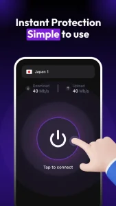 این اپلیکیشن با تمرکز بر سادگی استفاده، تنها با یک لمس فعال می‌شود و اتصال شما را به یک سرور امن برقرار می‌کند.